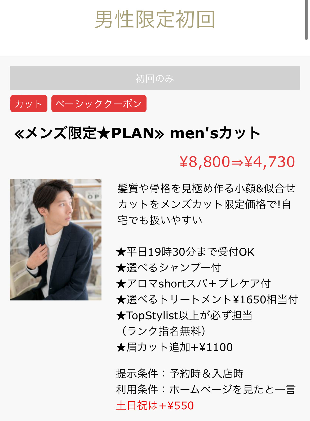 【メンズの方必見⭐】オススメクーポンとメニューのご紹介♪