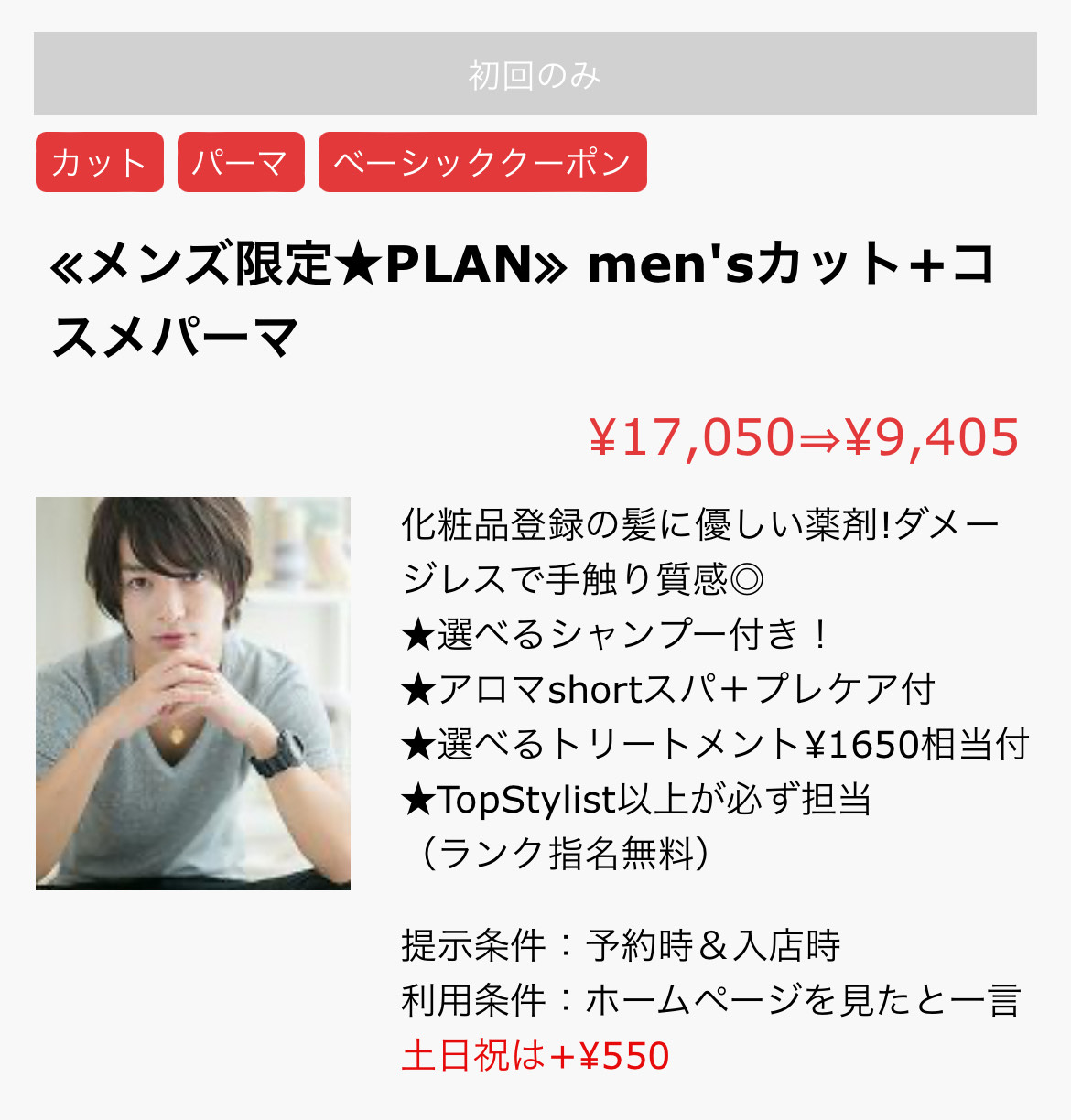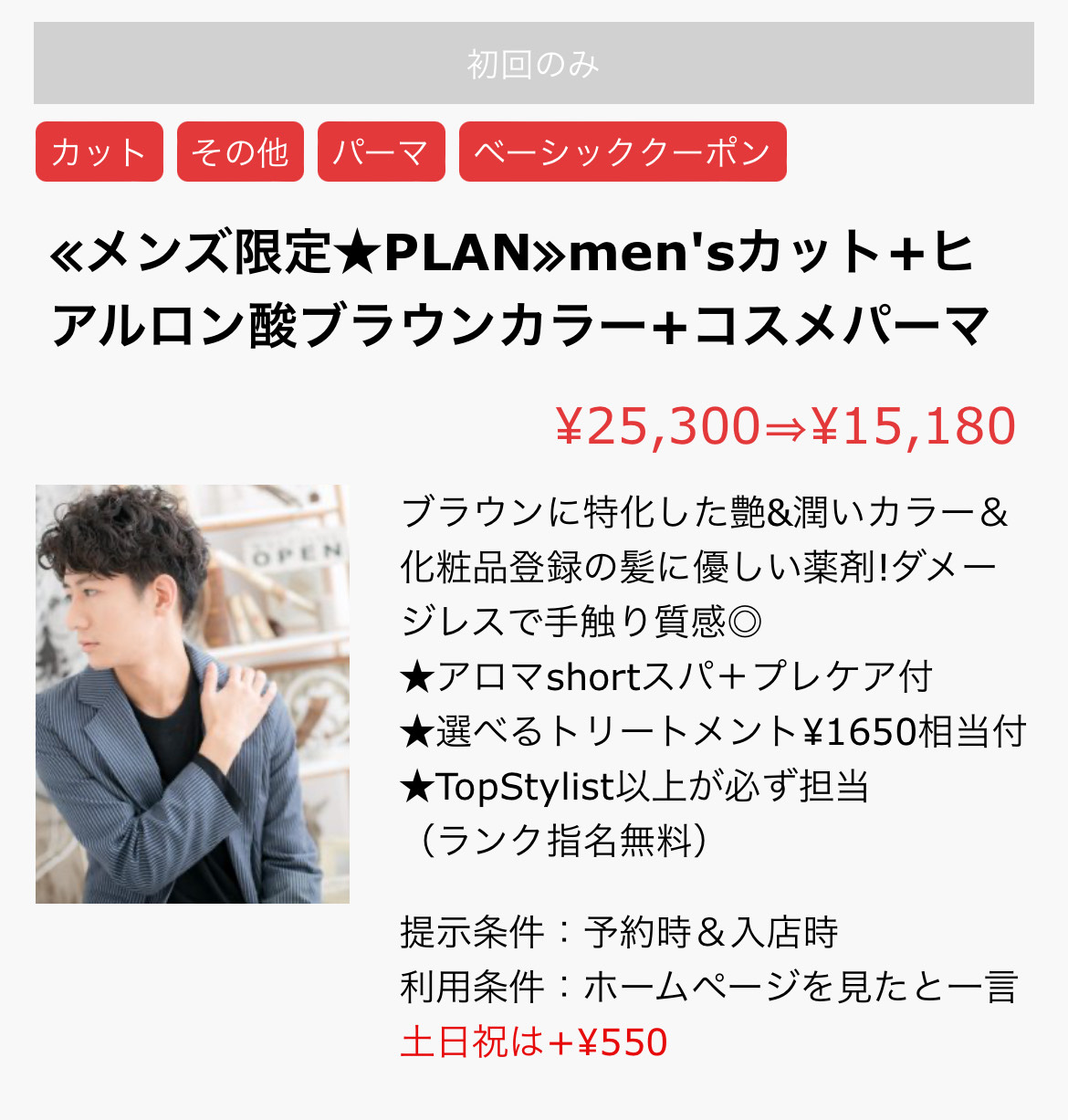 メンズの方の特別クーポンをご用意しております(^^♪