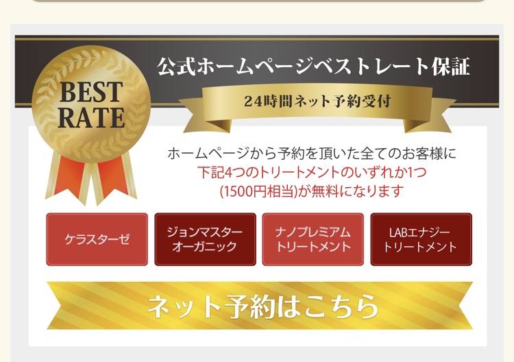 また、当店のホームページからのご予約も同じ特典でご案内しておりますので