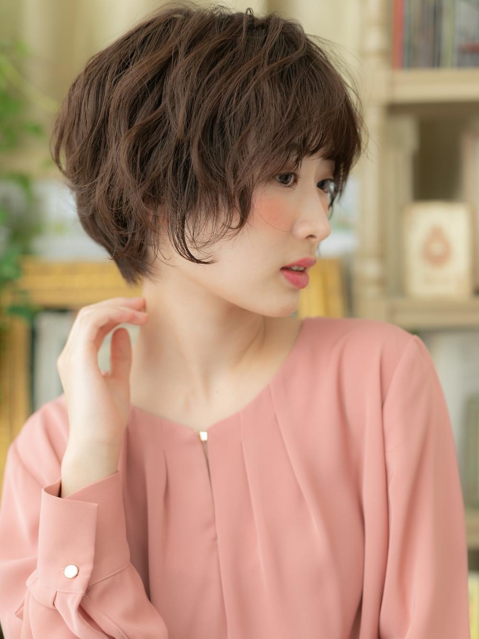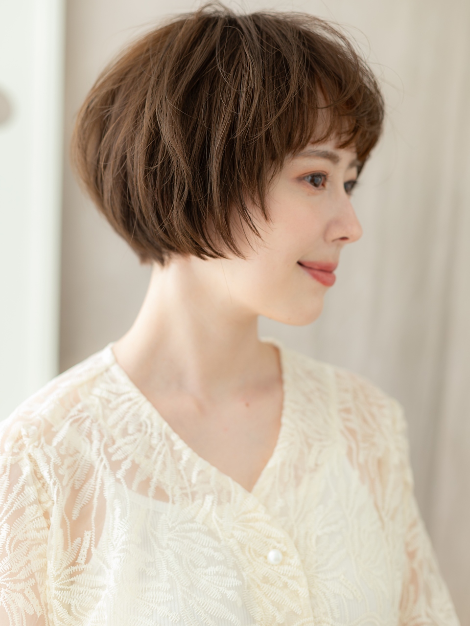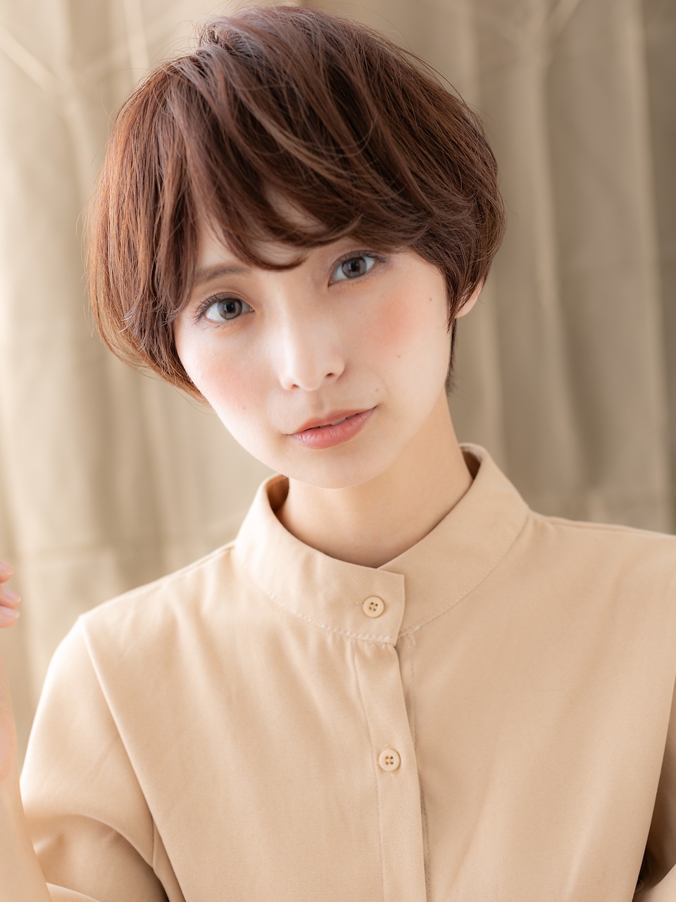 顔周りレイヤーカットひし形丸みショートマッシュ