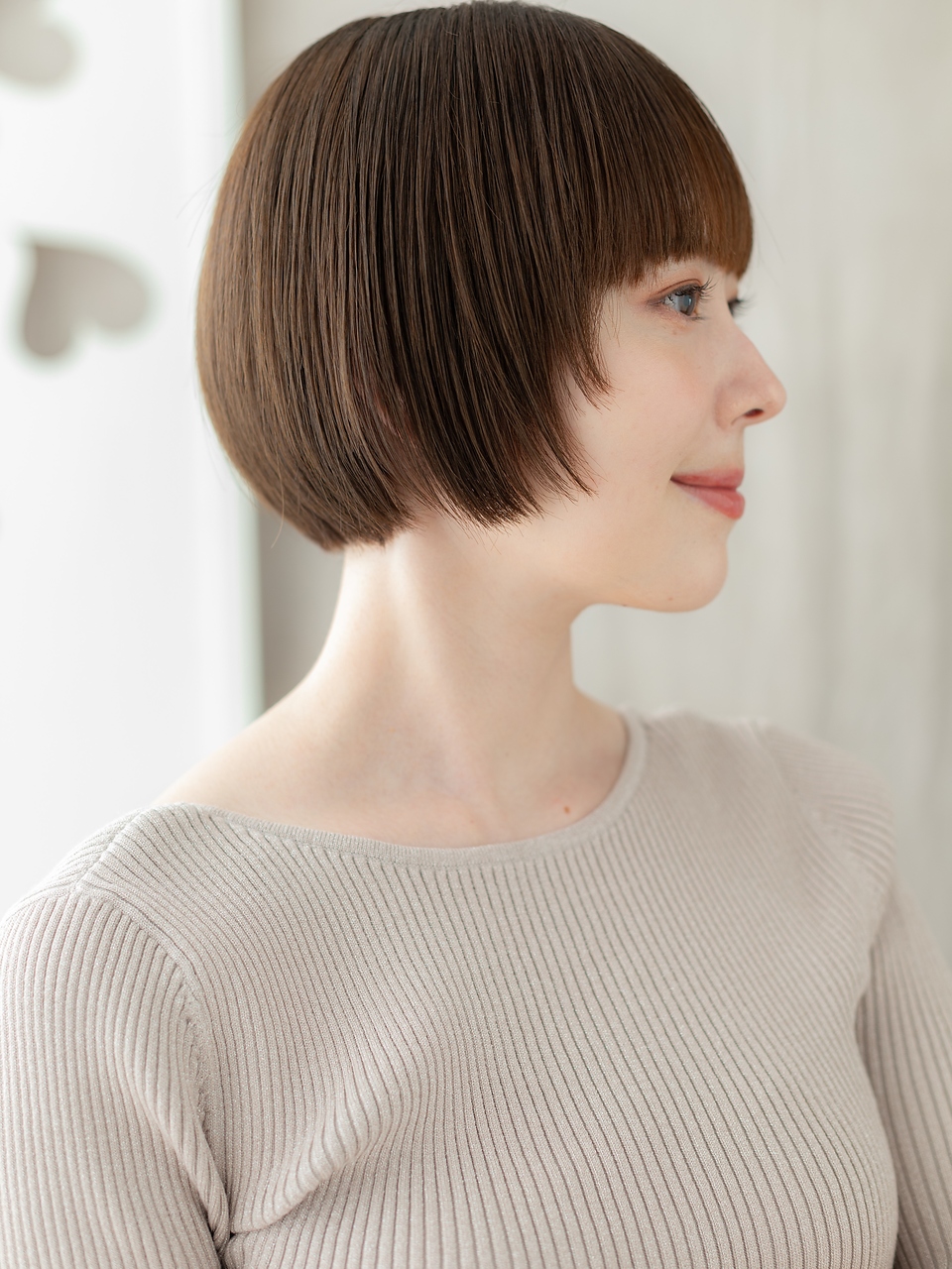 小顔補正カット/シースルーバング/丸みショート/切りっぱなし/ウルフ/艶感ストレート/似合わせカラー/黒髪/くすみカラー/ワンカール/立体感/姫カット/前下がりショート/ひし形レイヤーカット/ミディアム/20代/30代/40代