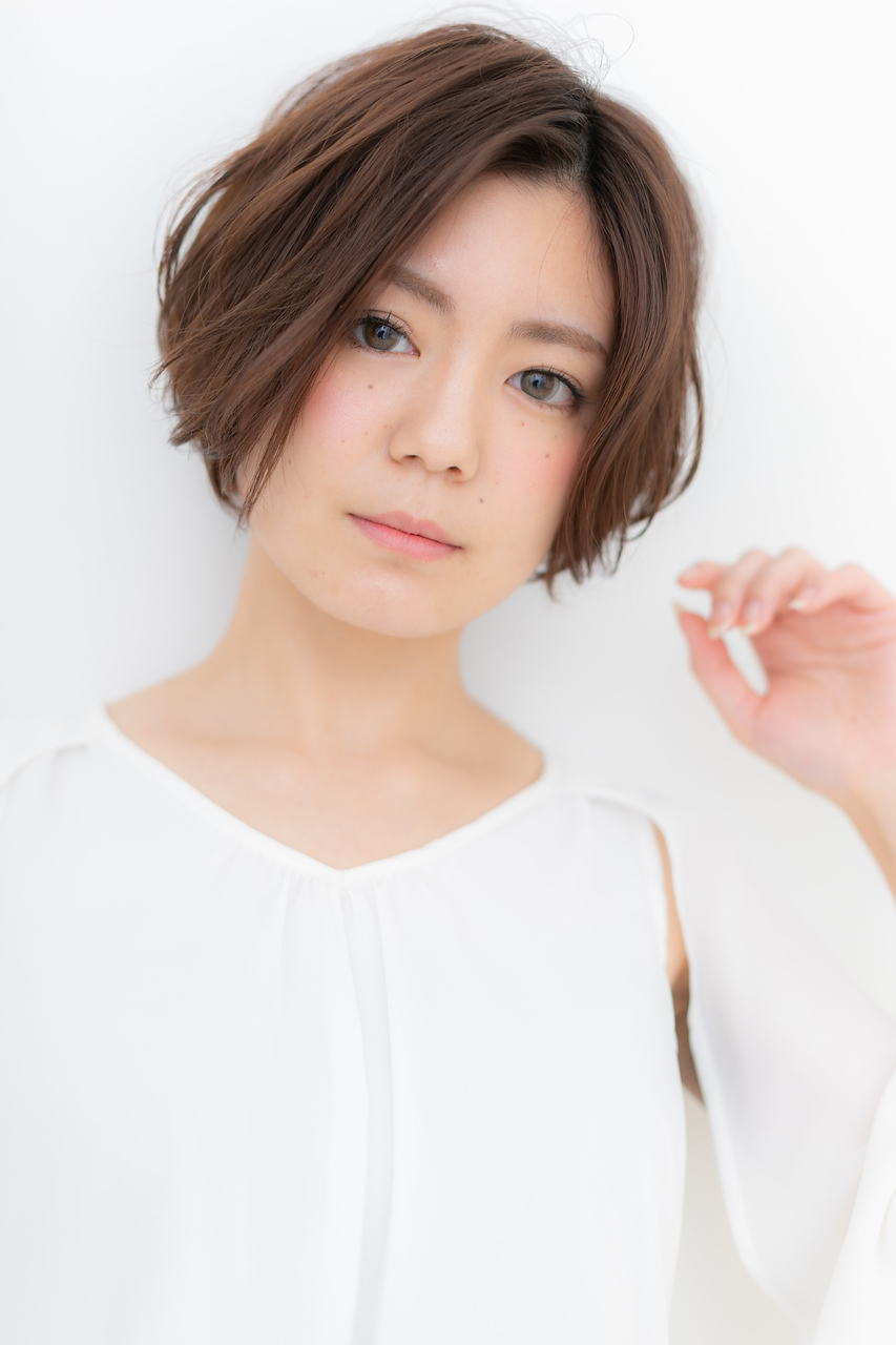 前下がりが新鮮!耳まで隠れるサイドのラインに色香を残し、ショートでもボーイッシュになりません。ノーバングで顔立ちを綺麗に。厚めバングや斜めバングも◎ラフなのにフェミニンなstyleは幅広い年代の方にオススメ。