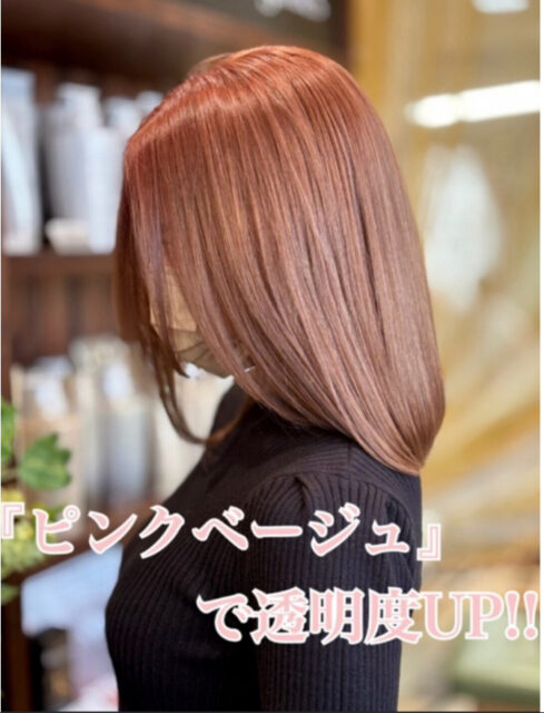 “毛髪改善トリートメント”を同時施術されると、色もちも良く、更に発色の良い『ピンクベージュ』に仕上がります☆