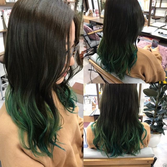 根元から毛先にかけて徐々に色を変えていくカラーになります。