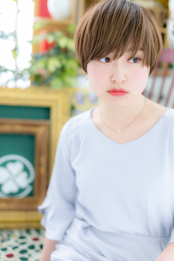 重めの斜めバングで目元を印象つけたアシンメトリーな大人ショート。耳上に丸みを持たせることで頭の形をキレイに見せて大人女子のコーデを完成。トリートメントしたようなカラーリングで髪の毛の悩みも解決!人気のカラーやアッシュグレー、グレージュ。ブリーチなしもおすすめ!30代・40代にも◎(メイク担当:北浦和店 棟方)