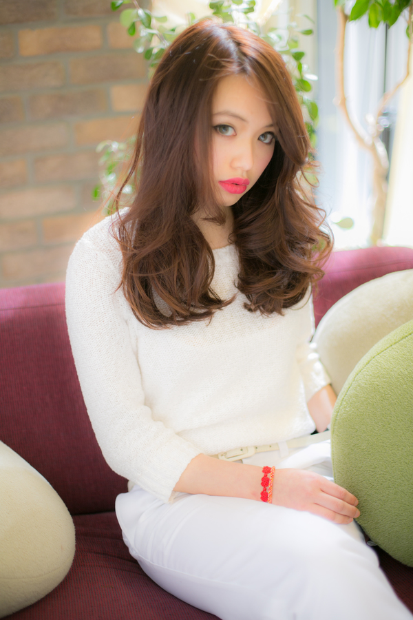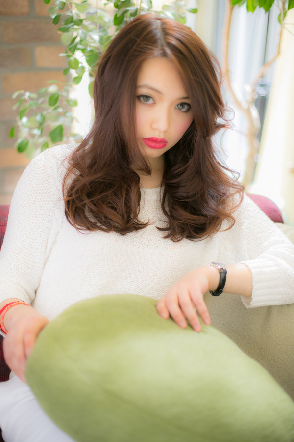 顔周りにレイヤーを入れたスタイルにパーマをかけ、乾かしただけで動きのあるスタイルに。