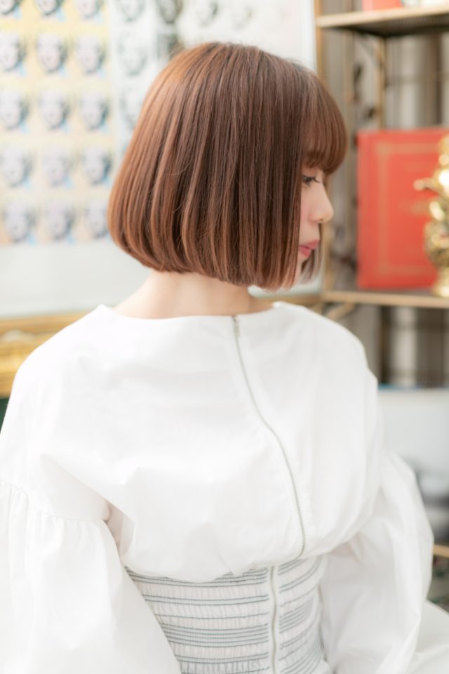 - ストレートアイロンorコテを使ってワンカールだけでOKの簡単スタイリング/ナチュラルボブやフェミニンボブ,大人ボブや前下がりボブからの伸ばしかけにオススメ/シースルーバングの透け感もモテ髪型/20代/30代/40代