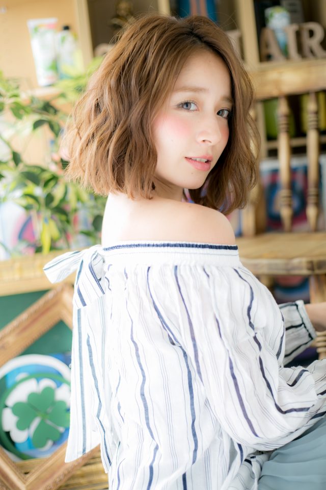 ほつれカールのゆるカールがやわらかフェミニンな印象のマシュマロボブ。空気感を出しつつ、ノーバングでスッキリ見せて、甘くなり過ぎない大人女子仕様に♪耳かけのタンバルモリも旬!◎(メイク担当:北浦和店 近藤)