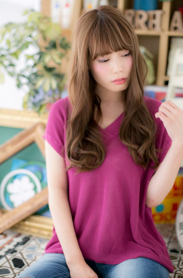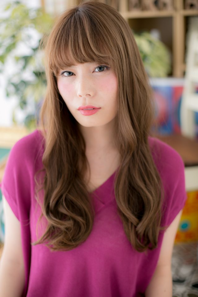 アンニュイ顔を作るエアリーカールのフェミニンロングのヘアスタイ。斜めバングや厚めバングで目力UPで大人女子のコーデを完成!前下がりラインで小顔に見せて美人顔に♪大人かわいい耳かけやワンサイドで抜け感を出してヘアアレンジ☆トリートメントしたようなカラーリングで髪の毛の悩みも解決!人気のカラーやピンク系のカラーも◎30代・40にもおすすす(メイク担当:北浦和店 棟方)