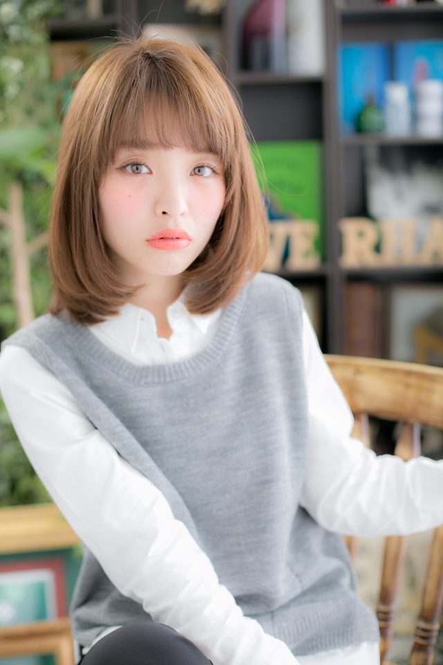 暖色系カラー大人かわいい前下がりロングボブ