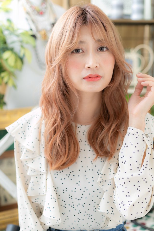 くせ毛風エアリーカールのグラマラスロングで大人女子のコーデも完成。外国人風ピンクグラデーションカラーやとリーメントしたようなカラーリングもおすすめ。耳かけやアシンメトリーなヘアアレンジもGOOD。30代・40代にも◎(メイク担当:北浦和店 棟方)