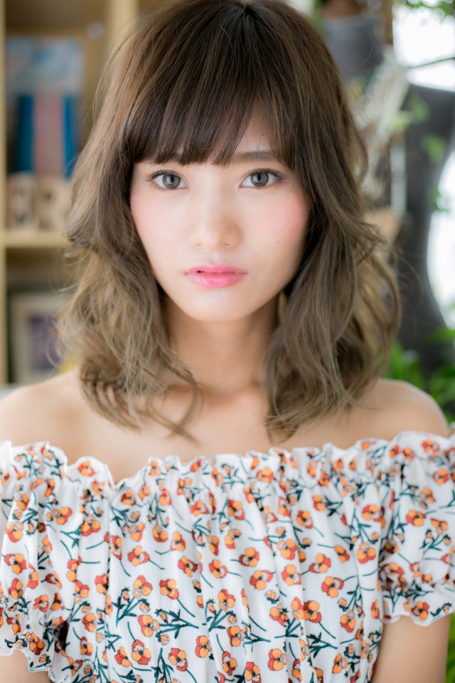 顔周りのカール、特に頬骨にかかる毛束で骨格をカバーして、お顔をキュッと引き締めて小顔に見せます。斜めバングとくびれカールのたおやかな動きで旬のハニーヘアに。男女問わず人気の愛され好感スタイルに格上げ♪