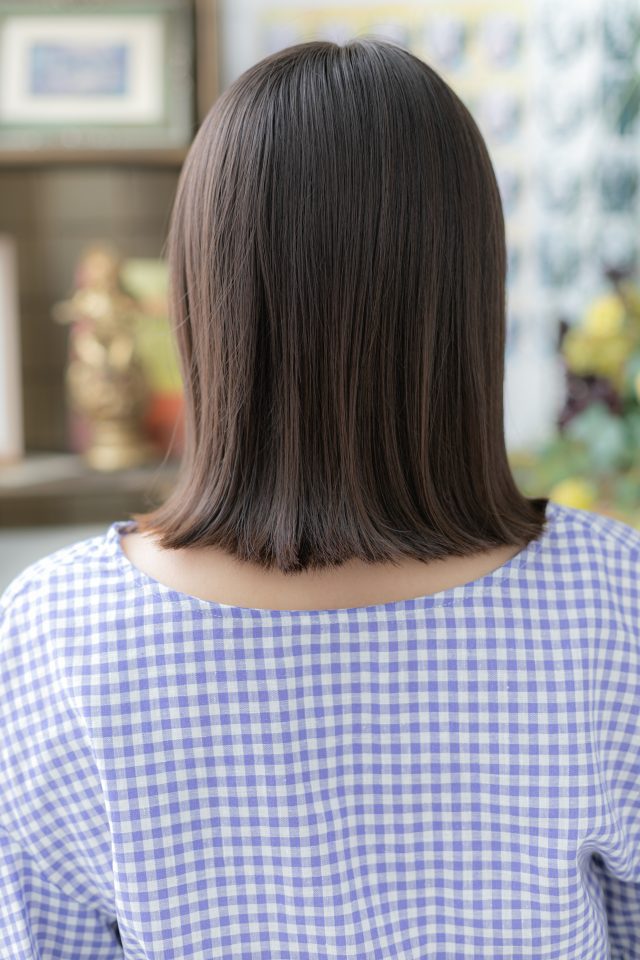 前下がりで小顔で大人女子のコーデも完成。斜めバングや厚めバングも大人かわいい。くせ毛風ゆるふわミディや耳かけもモテヘアスタイル。30代・40代にもおすすめ(メイク担当:川口店 成田)
