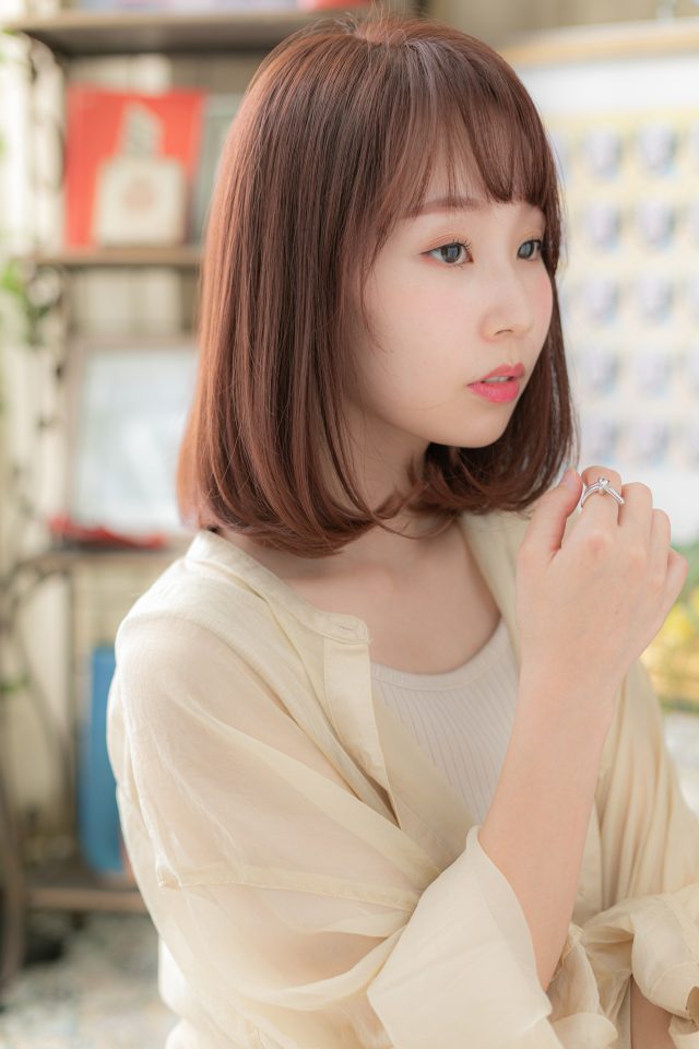 斜めバングや厚めバングで目力UPで大人女子のコーデを完成。前下がり&シースルーで小顔。ミディアムヘアを際立たせるグラデーションも◎。くせ毛風ふわミディや耳かけも大人かわいい。20代・30代にもおすすめ!(メイク担当:川口店 成田)