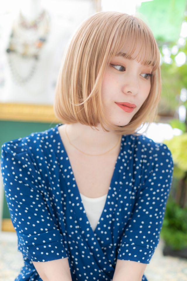 外国人風ハイトーンカラー前下がり大人ボブ