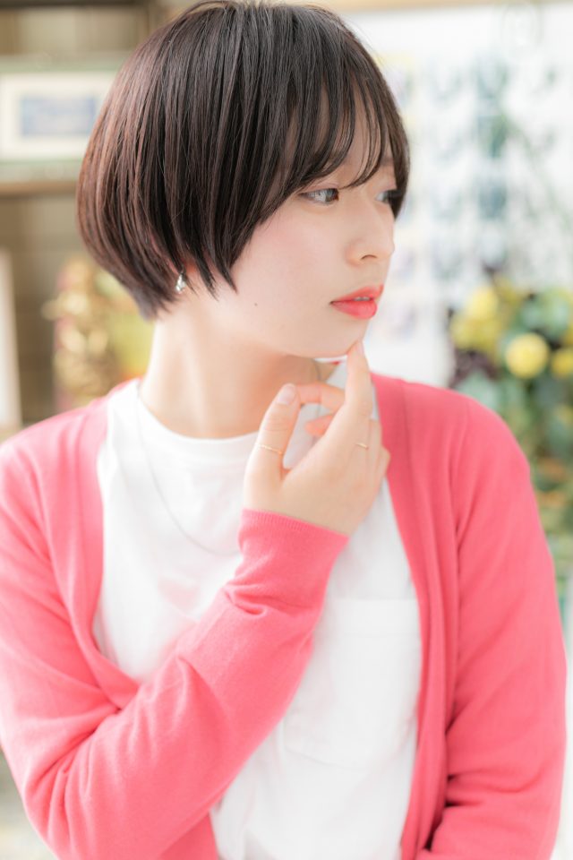 前下がりで小顔見せした丸みショート。シースルーバングや斜めバング、厚めバングで目力UP。ナチュラルボブやフェミニンボブ、大人ボブや前下がりボブ、くせ毛風ゆるふわミディなど伸ばしかけも◎耳かけも大人かわいい