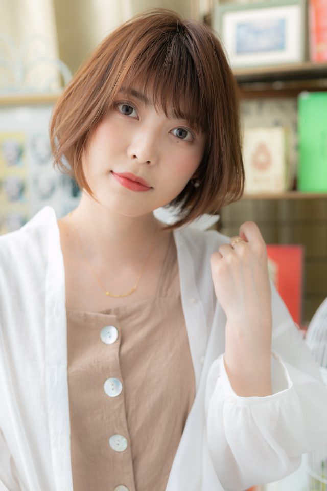斜めバングや厚めバングで目力UP。ナチュラルボブやフェミニンボブ、大人ボブや前下がりボブ、ミニボブやマッシュボブも大人かわいい。くせ毛風ゆるふわミディや前下がり耳かけウルフで小顔。(メイク担当:川口店 岩淵)
