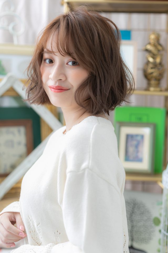 ナチュラルボブやフェミニンボブ、大人ボブや前下がりボブ、ミニボブで小顔。斜めバングや厚めバング、かきあげ前髪が大人かわいい。くせ毛風ゆるふわミディや耳かけ前下がりウルフも人気。(メイク担当:北浦和店 成田)
