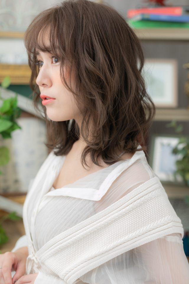 ナチュラルボブやフェミニンボブ、大人ボブや前下がりボブ、切りっぱなしボブも大人かわいい。斜めバング厚めバングで小顔。くせ毛風ゆるふわミディや耳かけ前下がりウルフも◎(メイク担当:COVERHAIRGROUP大西)