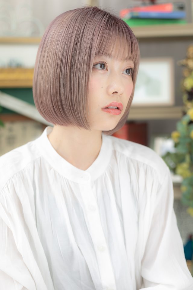 ハイトーンカラーで外国人風。斜めバング厚めバング,かきあげ前髪やシースルーバングで小顔。ナチュラルボブやフェミニンボブ,大人ボブや前下がりボブも◎くせ毛風ゆるふわミディや耳かけ前下がりウルフも大人かわいい。