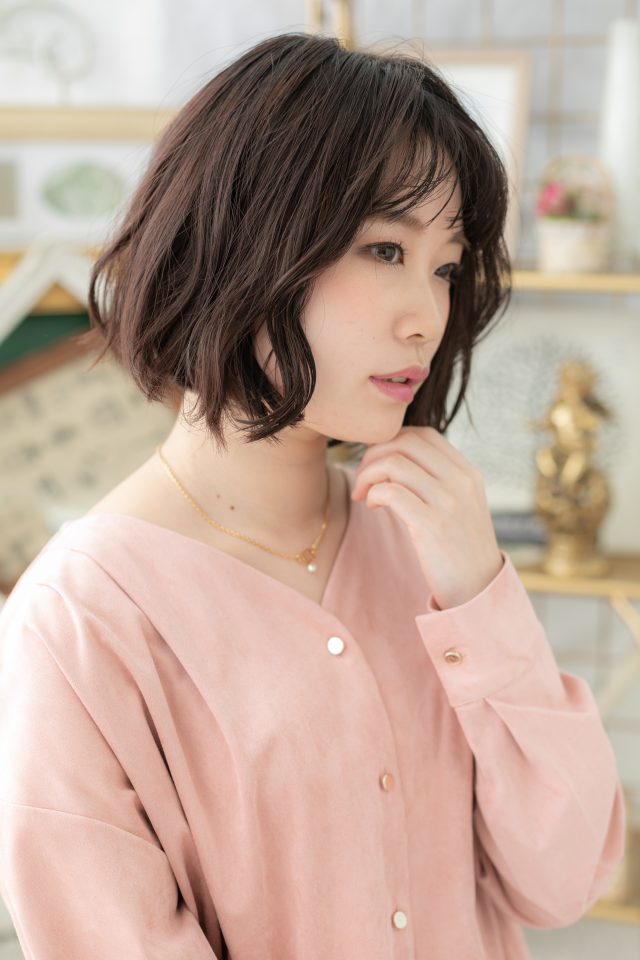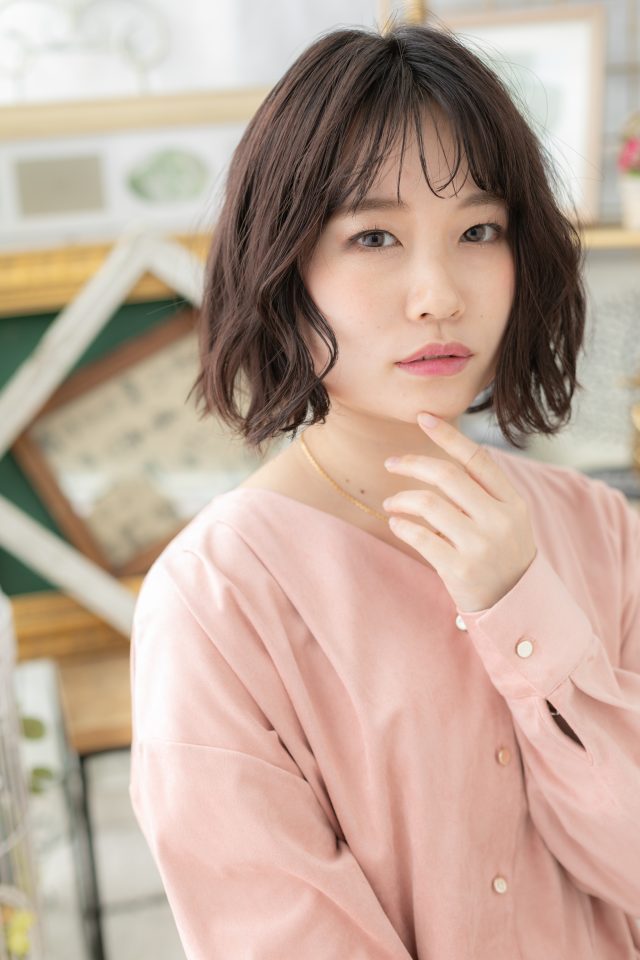 くせ毛風ゆるふわミディや耳かけ前下がりウルフも大人かわいい。ナチュラルボブフェミニンボブ、大人ボブ前下がりボブ、マッシュボブで小顔。斜めバング厚めバング、シースルーバングもGOOD。(メイク担当:川口店岩淵)
