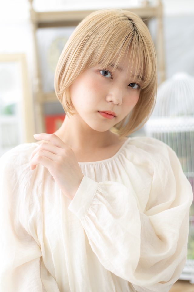 外国人風大人かわいい前下がり小顔金髪ボブ