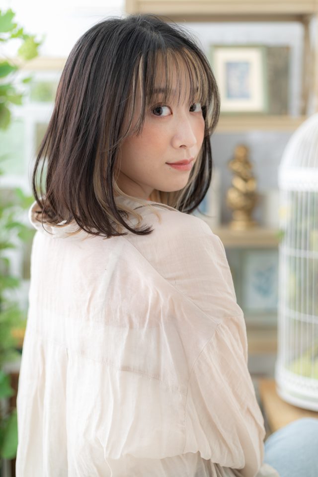 インナーカラー外国人風透け感小顔ロブヘア
