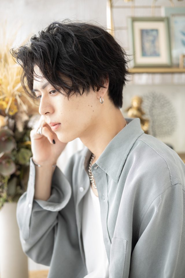 - ワックスをもみこむだけの簡単スタイリング/ニュアンスパーマや前髪パーマでトップにボリュームを持たせてスタイルアップ/七三分けやセンターパートでナチュラル仕上げも好感度あるモテ髪/ヒアルロン酸カラーは白髪にも対応可/20代/30代/40代/50代
