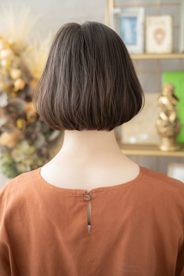 ミルクティーアッシュ小顔切りっぱなしボブ
