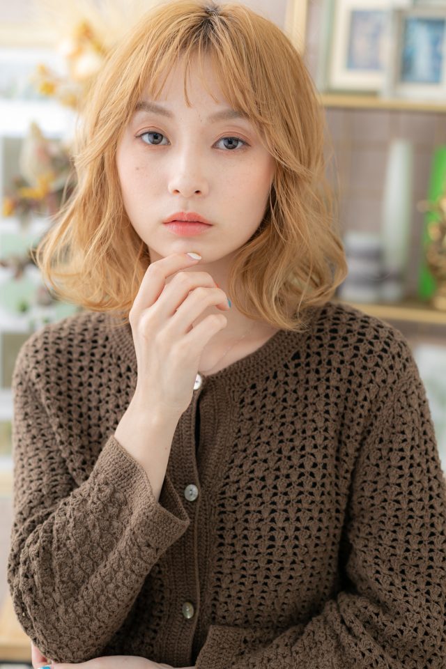ふわふわエアリーミディ小顔外国人風カラー