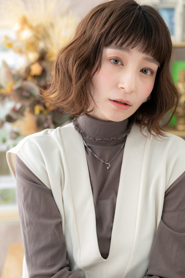 大人ボブ前下がりボブ、切りっぱなしボブマッシュボブからのイメチェンに。くせ毛風ゆるふわミディや耳かけ前下がりウルフも大人かわいい。斜めバング厚めバング、シースルーバングで小顔。(メイク担当:北浦和店成田)