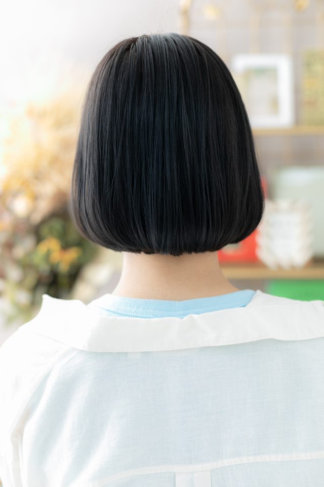 黒髪艶カラー内巻きワンカールナチュラルボブ