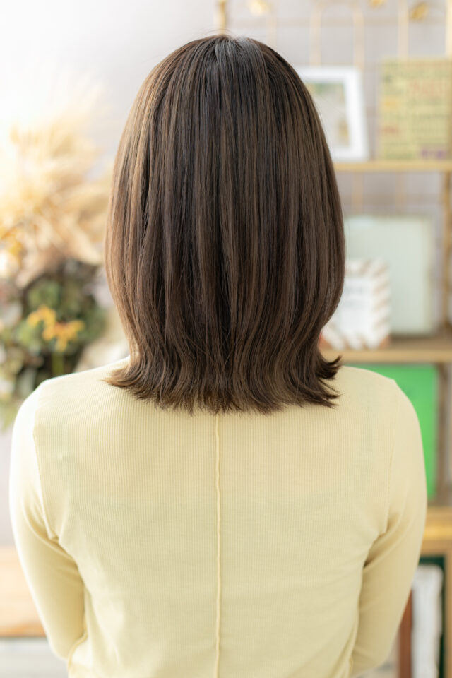 シースルーバングカーキベージュ小顔ミディ
