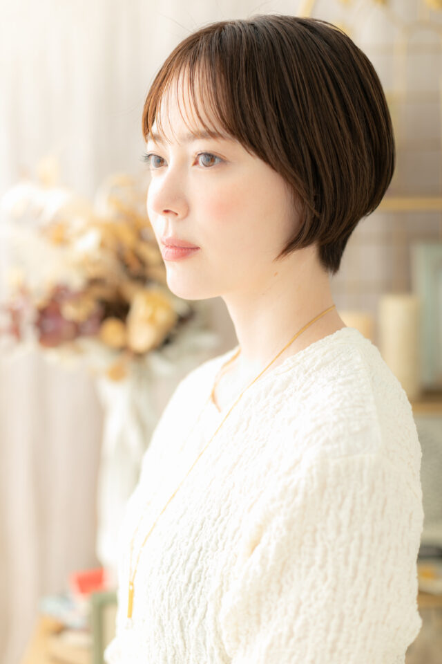 前下がり丸みショートやミニマムショートはセンターパートや耳かけが大人かわいい。斜めバングや流し前髪、かきあげ前髪も抜け感ヘア。ナチュラルボブマッシュボブ、切りっぱなしボブも人気。(メイク担当:北浦和店成田)