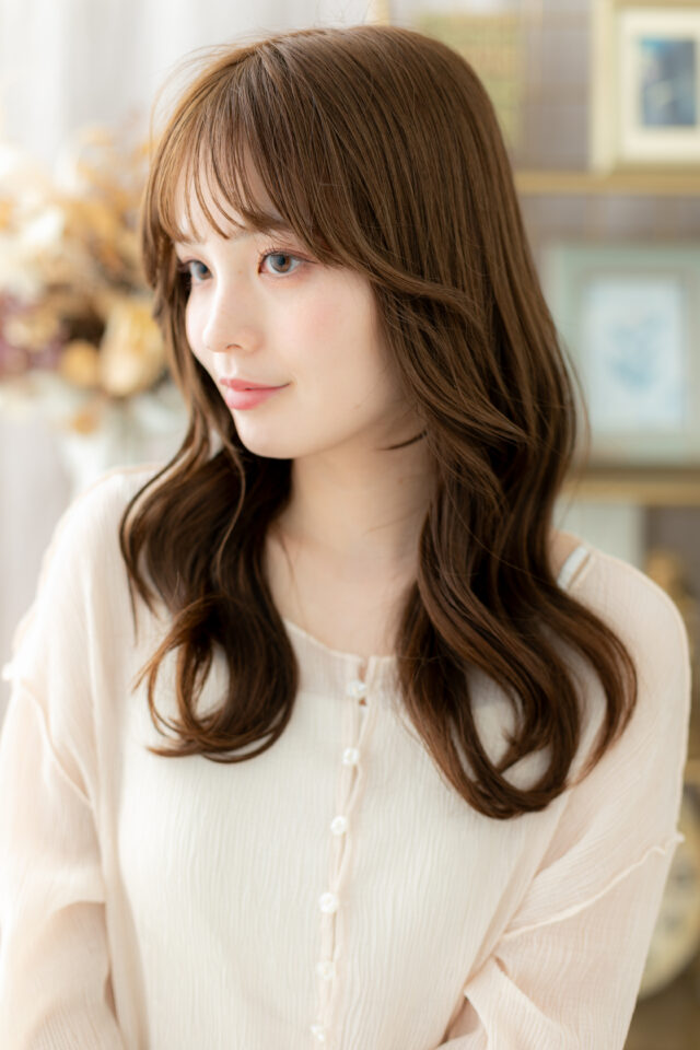 ナチュラルミディやエアリーミディ、くせ毛風セミディからの伸ばしかけにGOOD。センターパートやアシンメトリーのヘアアレンジも大人かわいい。レイヤーロングやウルフロングも人気。(メイク担当:COVERHAIRGROUP大西)