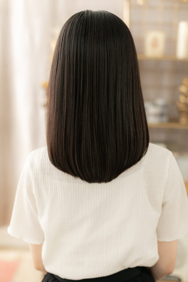 内巻きレイヤーカット黒髪ナチュラルミディ