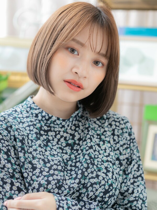 大人かわいいハイトーンカラーの韓国風ナチュラルボブ。フェミニンボブや大人ボブ、前下がりボブも人気。くせ毛風ゆるふわミディや耳かけ前下がりで小顔。斜めバングや厚めバングで目力UP。(メイク担当:川口店 成田)