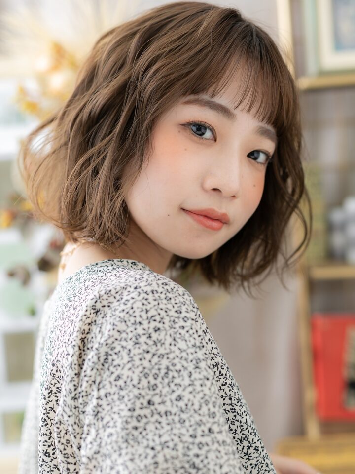 大人可愛いゆるふわオン眉ボブ20代30代