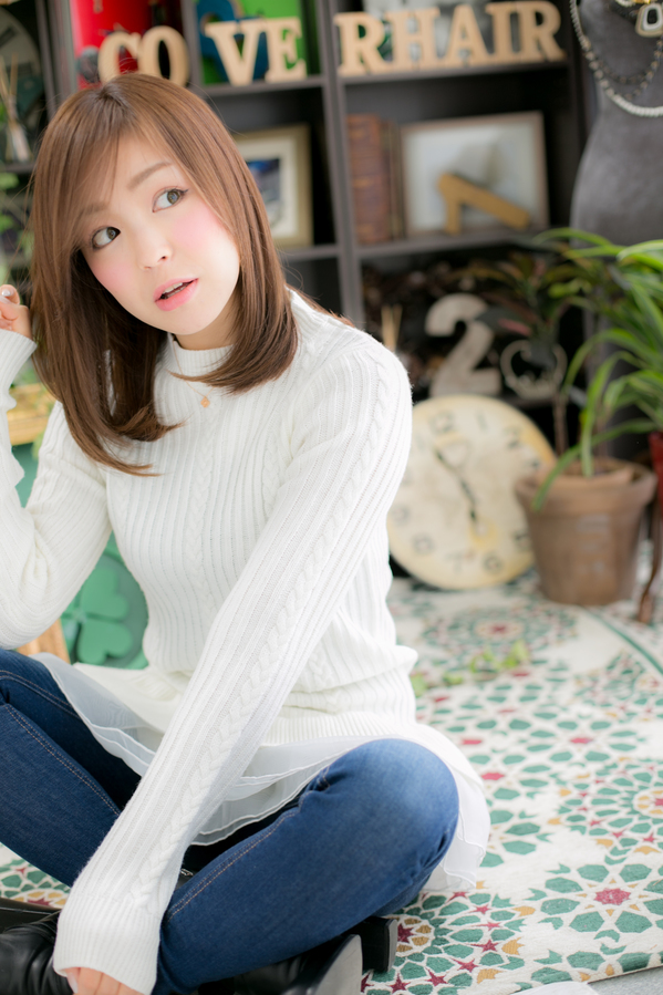 透明感あふれるヌーディ―な上質ストレート。顔周りに内巻きになる様な自然なストレートなので、気になる輪郭も隠せます☆明るいベージュカラーがサラツヤ感をよりUPさせます。
