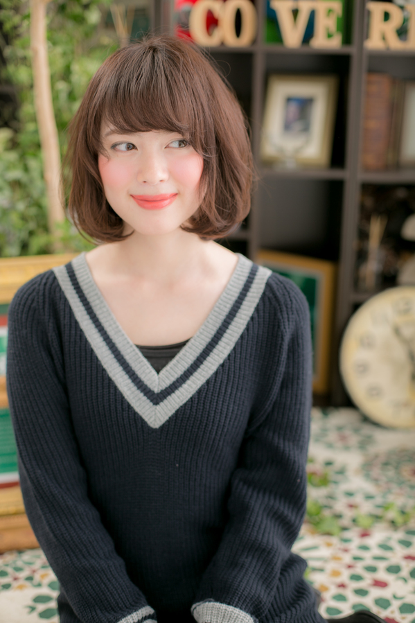 クセのある方は、パーマ無しでクセを生かしてスタイルに!基本はスタイリング剤無しでOKなのも嬉しいポイント。カール感が取れ易い方は、内巻きにブローして、崩してセットを。