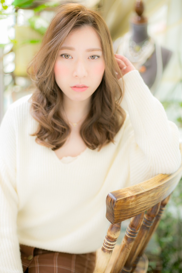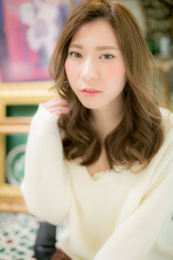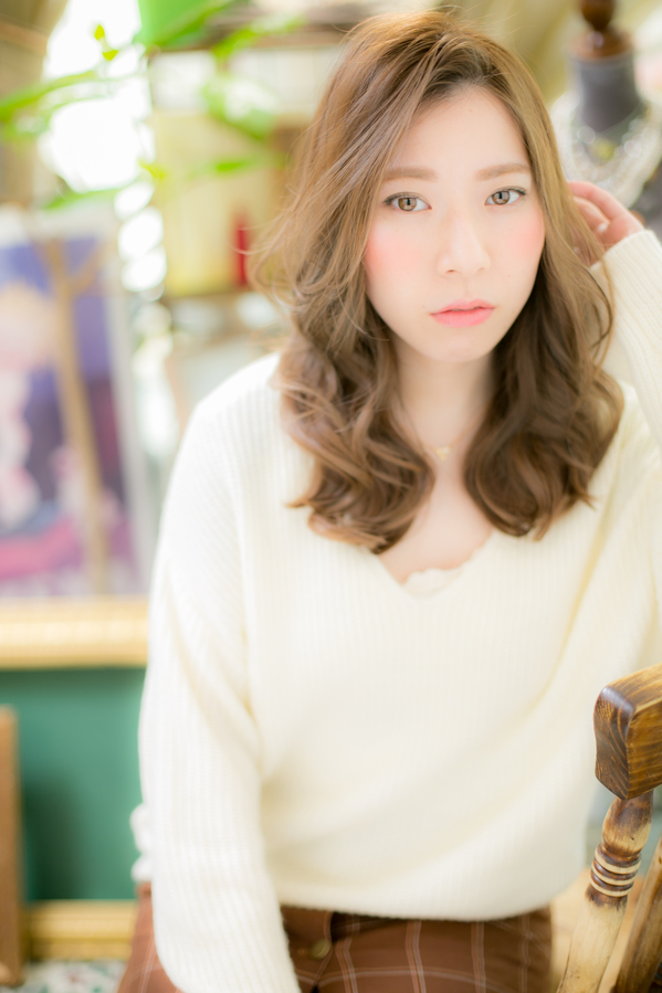 トップにレイヤーを入れ、パーマをかけることでふんわり動きのあるスタイルに。ハイトーンカラーで軽さも出ます。