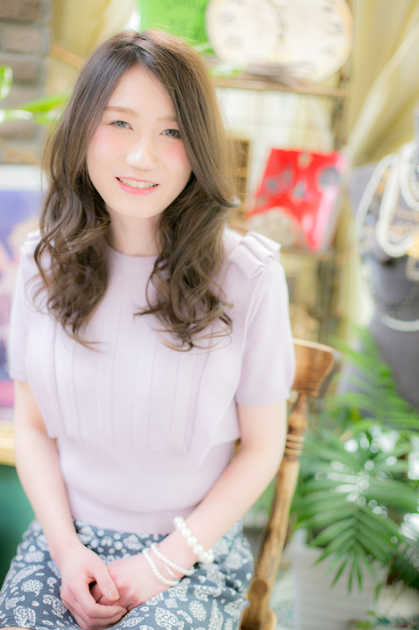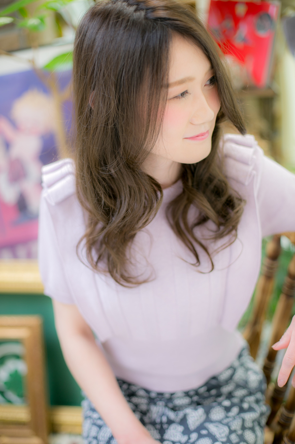 あご上ラインからカールを出して、柔らかい印象に仕上げました。根元から中間まではタイトに抑えて、毛先のカールが際立つ感じに♪