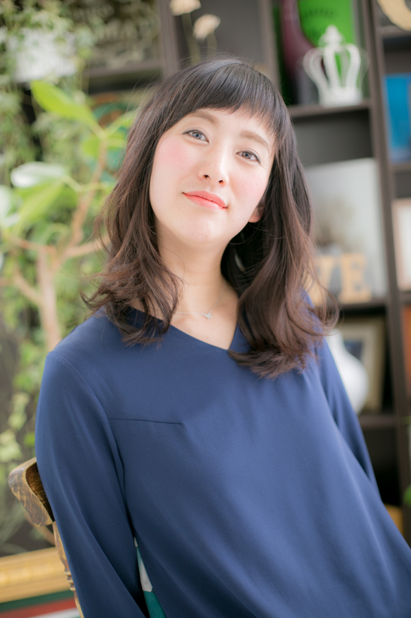 前髪は浮かない様に整え、毛先のゆるいカールを持ち上げながら動きを出し、セット。軽い仕上がりにはスプレーが◎