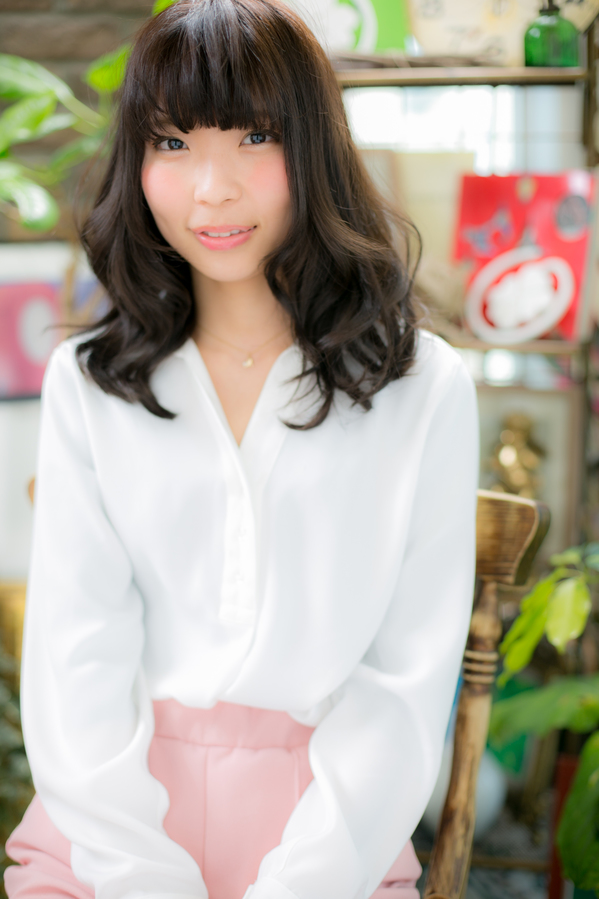 Aラインシルエットに顔周りのみレイヤーを入れてパーマをかけることで、小顔効果が期待できちゃうのが嬉しい。オフィスでもOKな上品スタイルです。