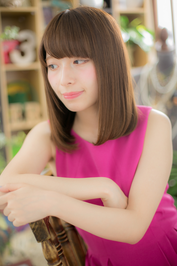透明感たっぷりのベージュ系カラーとさらさらストレートでウケ抜群の黄金スタイルです。縮毛矯正とは違うナチュラルなストレートがポイントです☆
