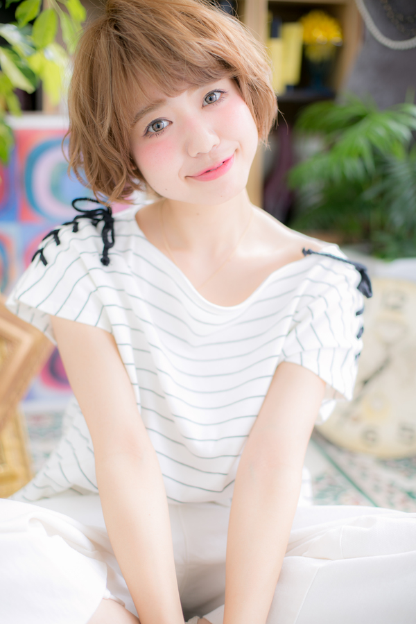外国の子どものようなくしゃっとした柔らかい印象のウェーブボブに明るめのカラーをオン。ハイライトで動きを出すのがオススメです☆毎日の気分もハッピーになれそう♪