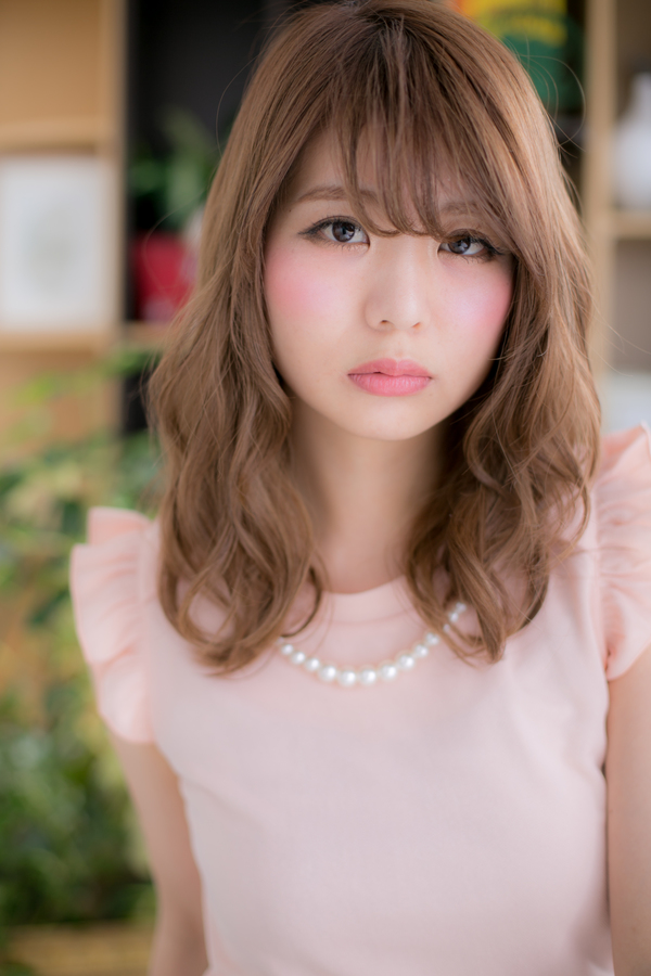 透明感たっぷりのベージュカラーとシフォンの様なやわふわウェーブで女の子らしさが光るスタイルです。アップやアレンジもしやすいのでチャレンジしてみてください☆