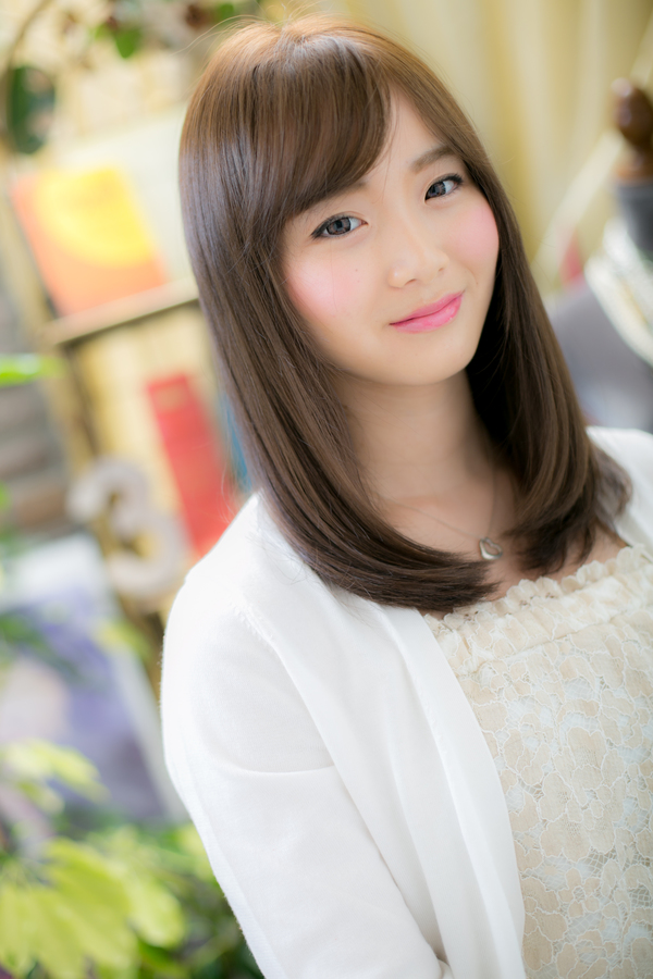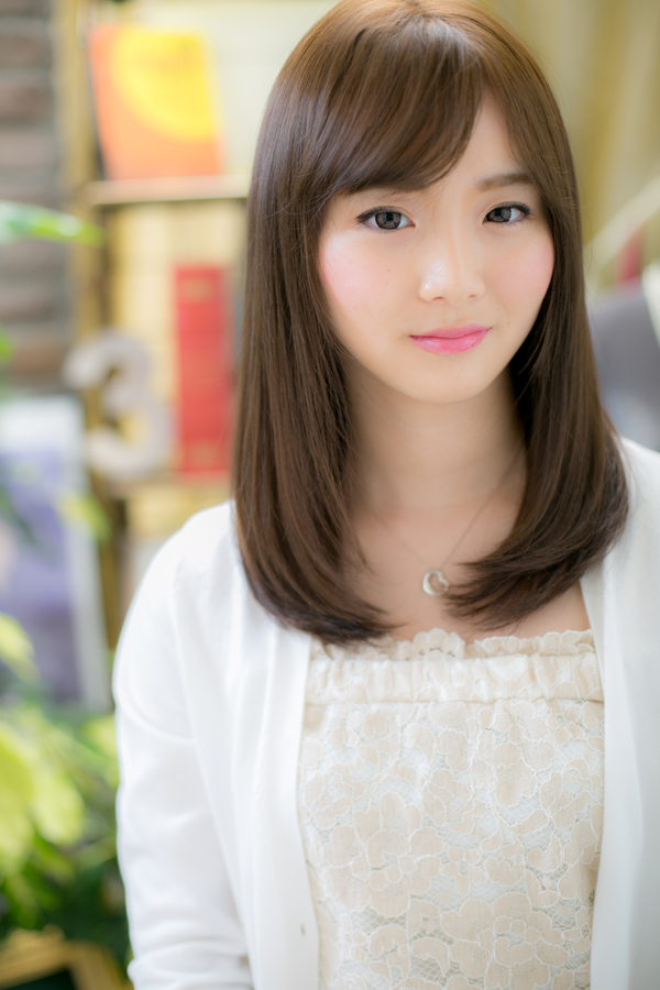 根元から毛先にかけてストレートパーマでタイトに抑えました。毛先は軽く内側にいれた、シンプルなストレートスタイルです。