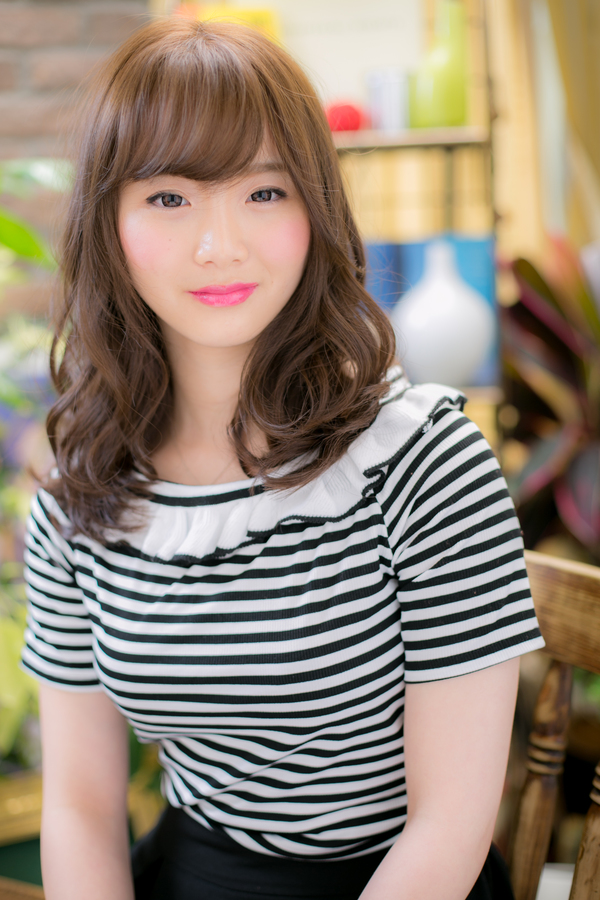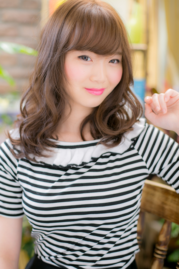 全体的にボリュームを出し、中間から毛先にかけてMIXパーマをかけてゆる感を出したスタイルです。前髪はナチュラルに流しました。