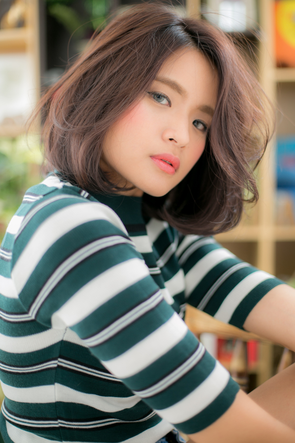 きっちりしすぎないふわぼさ感がナチュラルなおしゃれ感を漂わせるふんわりナチュラルボブ。簡単なブローでセットできるくらいの緩やかパーマをかけることでエアリー感ある仕上がりに☆